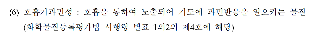 비고 내 “호흡기과민성” 추가