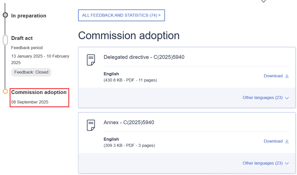 EU RoHS 개정 위임 지침 (2025년 9월 8일 채택)